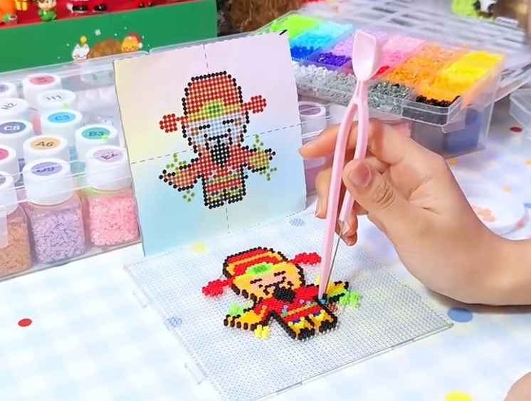 O kit acompanha moldes exclusivos, cartas com personagens para serem reproduzidos e pinos cognitivos. A criança observa o personagem na carta, analisa o molde e utiliza os pinos para recriar cada detalhe, exercitando o raciocínio passo a passo.