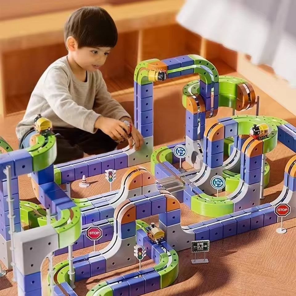 As crianças vão adorar montar sua mega pista magnética, encaixando cada peça de forma criativa e desenvolvendo habilidades essenciais como coordenação motora, raciocínio lógico e percepção espacial. Cada montagem se transforma em uma nova aventura, estimulando a imaginação sem limites!