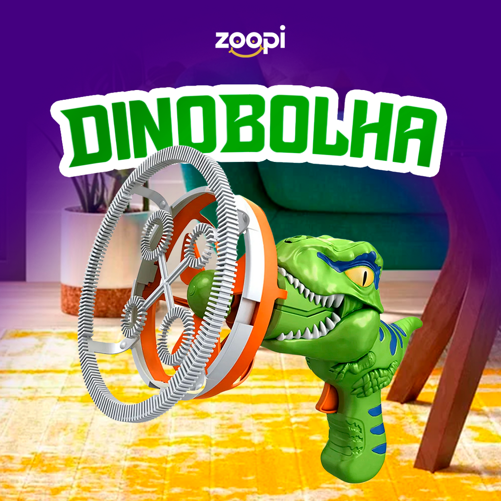 O DinoBolha é tipo aquela pistola irada que dispara bolinhas de sabão, mas com um toque pré-histórico.