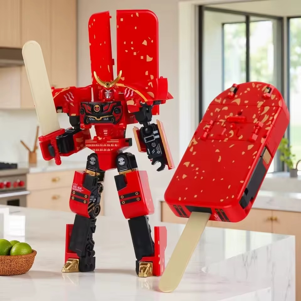 Prepare-se para surpreender a criançada com um brinquedo que une imaginação, criatividade e muita emoção! O Kit de Picolé Transformável começa como deliciosos picolés coloridos e, em segundos, se transforma em um mega robô incrível 🤩